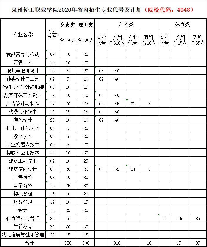 2020年福建省夏季高考分专业招生计划表(院校代码:4048)