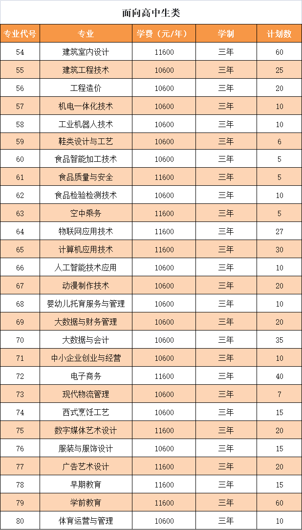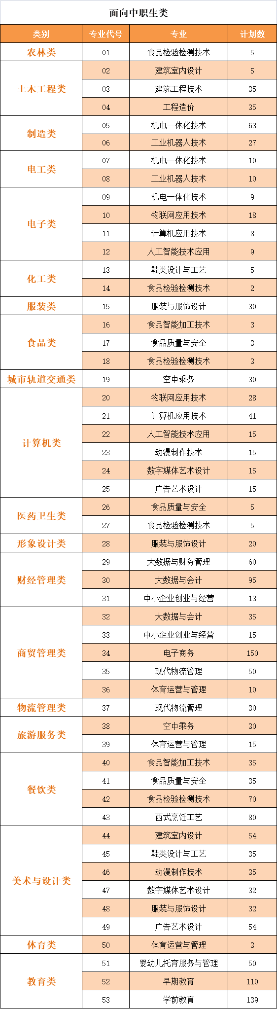 2022年高职分类考试分类别分专业招生计划